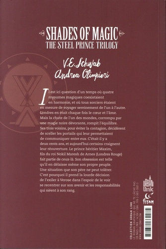 Il est ici question d'un temps où quatre royaumes magiques coexistaient sans encombre, et où tous sorciers étaient en mesure de voyager sereinement de l'un à l'autre. Londres en était chaque fois le coeur et l'âme, jusqu'à la chute de l'un des mondes, corrompu par une magie noire dévorante. Ses trois voisins, pour éviter la contagion, décidèrent de sceller les portails qui leur permettaient de communiquer entre eux. C'était il y a deux cents ans, et aujourd'hui certains craignent leur réouverture. Le prince héritier Maxim, fils du roi Nokil Maresh de Arnes (Londres Rouge) fait partie de ceux-là. Son obsession est telle qu'il en délaisse même son propre peuple. Une situation que son père ne peut tolérer. C'est pourquoi il prend la lourde décision de l'exiler à Verose dans l'espoir de le voir se recentrer sur son avenir et les responsabilités qui sied à son rang.