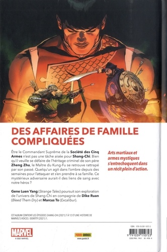 Qui était la mère de Shang-Chi ? Comment a-t-elle pu tomber amoureuse d'un seigneur de guerre maléfique tel que Zheng Zu ? Tandis que les mystères du passé de Shang-Chi se dévoilent, l'instigateur qui rallie tous les ennemis du Maître du kung-fu sort également de l'ombre ! Dans l'esprit du film Shang-Chi et la légende des dix anneaux, Gene Yuang tisse une trame familiale qui intègre le Maître du Kung Fu au reste de l'univers Marvel. Après avoir affronté les plus grands héros Marvel dans le tome précédent, Shang-Chi découvre son réel ennemi.