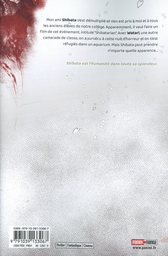 Alors qu'ils pensaient avoir échappé à Shibata, Satô et Watari se retrouvent piégés dans un aquarium contrôlé par des formes mutantes de leur assaillant. Ils vont alors découvrir les sordides expériences de ce dernier... Katsuya Iwamuro est un jeune auteur très prometteur du JUMP+. Après un premier one shot (Armageddon wa Mata Ashita) en 2020, il créé en 2023 Shibatarian, son premier récit sérialisé. Publiée sur Manga plus en anglais, cette oeuvre est devenue virale, de nombreuses vidéos commentant le titre circulent sur Internet. Les lecteurs sont enthousiastes et dithyrambiques, et c'est sans aucun doute grâce au trait si particulier de l'artiste et à une intrigue envoûtante mêlant surnaturel et horreur.