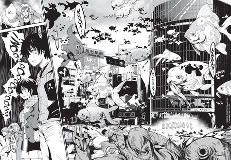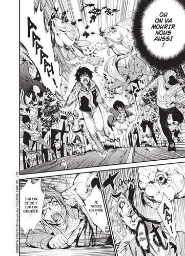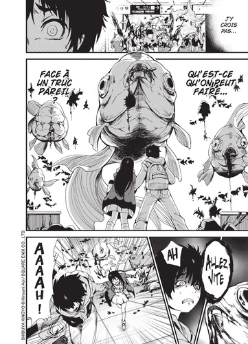 Shibuya, quartier ultra branché de Tokyo. 14h50. J'ai toujours espéré qu'un événement bousculerait un jour mon quotidien de lycéen un peu morne. Le genre de rebondissement que le cinéaste amateur que je suis peut voir dans ses films préférés... mais pas ce genre-là. J'ai vu des passants se faire dévorer par ces... poissons géants, qui sont apparus tout à coup, flottant partout dans le quartier... Ces créatures sont réelles. Ce ne sont ni des effets spéciaux ni des trucages. Et elles ont faim de chair humaine. Moi et d'autres survivants tentons de leur échapper, mais tout porte à croire que nous sommes bel et bien coincés dans cet enfer...
