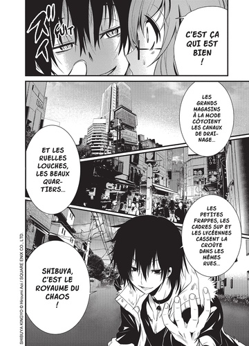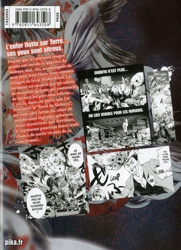 Depuis que les poissons rouges géants ont envahi le quartier de Shibuya, moi, Aki, accompagnée de mon petit frère Haru, nous sommes réfugiés au lycée Midorikawa. Le bâtiment est encerclé par ces saletés de monstres tachetés qui continuent de dévorer les gens sans relâche... C'est là, dans cet enfer, que j'ai rencontré le "furet de Shibuya", un sans-abri farouche, objet de nombreuses légendes urbaines. Aussi mystérieux que terrifiant, il représente pourtant notre seule chance de sortir vivants de ce cauchemar...
