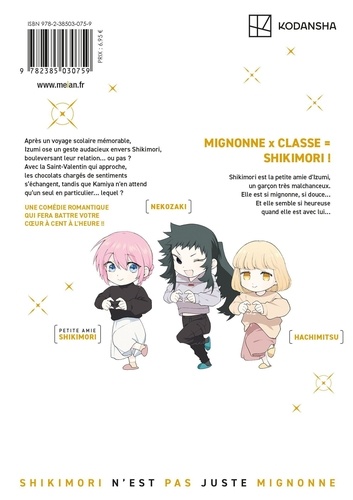Après un voyage scolaire mémorable, Izumi ose un geste audacieux envers Shikimori, bouleversant leur relation... ou pas ? Avec la Saint-Valentin qui approche, les chocolats chargés de sentiments s'échangent, tandis que Kamiya n'en attendqu'un seul en particulier... lequel ? Shikimori est la petite amie d'Izumi, un garçon très malchanceux. Elle est si mignonne, si douce... Et elle semble si heureuse quand elle est avec lui... Une comédie romantique qui fera battre votre coeur à cent à l'heure !!