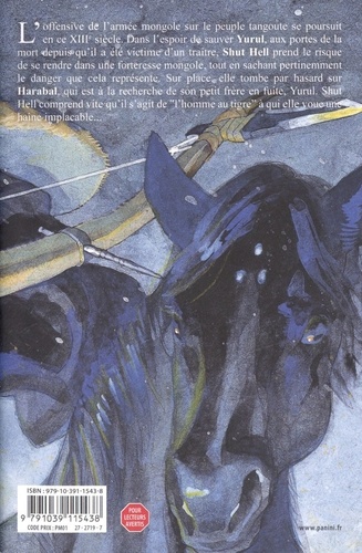 L'offensive de l'armée mongole sur le peuple Tangoute se poursuit en ce XIIIe siècle. Dans l'espoir de sauver la vie de Yurul, à l'article de la mort depuis qu'il a été victime de la traîtrise d'un allié, Shut Hell prend le risque de se rendre dans une forteresse mongole. Elle y rencontre par hasard Harabal qui est à la recherche de son frère. Elle comprend vite qu'elle est en face de "l'homme au tigre" qu'elle exècre... La rencontre entre ces deux grands guerriers s'annonce sanglante ! Yu Ito, l'autrice d'Ookami Rise, est de retour dans le catalogue Panini Manga avec sa première longue série Shut Hell (meilleur espoir du 16ème prix culturel Osamu Tezuka) qui s'est achevée au Japon en 2017. Dans ce manga doté d'un contexte historique original, Yu Itô mêle habilement action et fantastique pour livrer un propos universel sur l'importance de préserver la culture et l'héritage de tous les peuples.