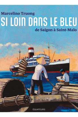 Né d'une mère malouine et d'un père saïgonnais, Marcelino Truong était déjà promis à une vie sous le signe de la rose des vents. De l'archipel des Philippines dans sa petite enfance au Cercle sportif de Saigon où il apprend à nager sous le tchak-tchak-tchak des hélicos. De la plage d'Ocean City sur la côte Est des Etats-Unis à la baie paradisiaque de Nha Trang au Centre du Vietnam. Du porte-avions Clémenceau où il est aspirant de Marine et où il croque ses premiers dessins à la grève du Sillon de Saint-Malo où il a accroché son hamac depuis quelques années et où il aime plonger en scaphandre à l'abri du Fort de La Conchée, la mer n'est jamais loin. Marcelino a grandi au bord de l'eau, sa vie et son imaginaire peuplés de jonques, sampans, canonnières et chalutiers, navigateurs, flibustiers et loups de mer, coquillages et bois flottés, trésors sous-marins et embruns. A quel moment l'océan, que l'on dit agité et incertain, est-il devenu un repère ? Comment cette vaste étendue dont les couleurs ne cessent de changer selon la lumière, a-t-elle agi sur sa vocation d'artiste ? Avec humour et tendresse, Marcelino nous emmène de port en port à la recherche de cette part d'enfance toujours recommencée. Si loin que le bleu est une odyssée personnelle autant que l'esquisse d'un rapport au monde, poétique et océanique.