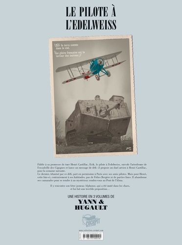 Fidèle à sa promesse de tuer Henri Castillac, Erik, le pilote à l'edelweiss, survole l'aérodrome de l'escadrille des Cigognes et lance un message de défi : il propose un duel aérien à Henri Castillac, pour la semaine suivante. Ce dernier, tétanisé par ce défi, part en permission à Paris avec ses amis pilotes. Mais pour Henri, cette fois-ci, contrairement à ses habitudes, pas de Folies Bergère ni de parties fines. Il abandonne ses camarades pour se rendre à un mystérieux rendez-vous au Pont de l'Alma. Il y rencontre son frère jumeau Alphonse, qui a été muté dans les chars, et lui fait une terrible proposition...