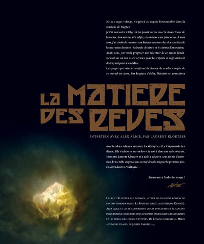 Librement adapté de la légende des Nibelungen qui a inspiré à Wagner l'un de ses plus beaux opéras, "Siegfried" est un sommet de l'heroic-fantasy, une bande dessinée fascinante qui renoue avec les mythes fondateurs des plus belles légendes. L'enfance de Siegfried, fils des hommes et des dieux, élevé parmi les loups par Mime. "Le Nibelungen" forme le premier tome d'une extraordinaire trilogie signée par Alex Alice, le génial créateur du "Troisième Testament". Une série événement qui prend place, dès aujourd'hui, parmi les chefs-d'oeuvre du neuvième art.
