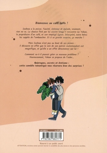 Bienvenue au café GoYo ! Soohwa a la poisse. Fauché, chômeur et malade, vraiment, rien ne va. La chance finit par lui sourire lorsqu'il rencontre Go Yohan, le propriétaire d'un café, et son employé Gyoon. Désespéré, notre héros les supplie de l'embaucher. Et à sa grande surprise, ça marche ! Mais Soohwa n'est pas au bout de ses peines : il découvre en effet que la voix de son patron malentendant est magnifique, et qu'elle a un effet dévastateur sur lui ! Comment va-t-il pouvoir gérer ce nouveau problème ? Heureusement, Yohan se propose de l'aider... Quiproquos, secrets et érotisme : cette comédie romantique vous réservera bien des surprises !