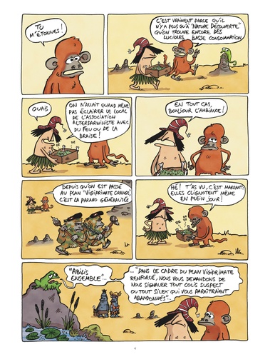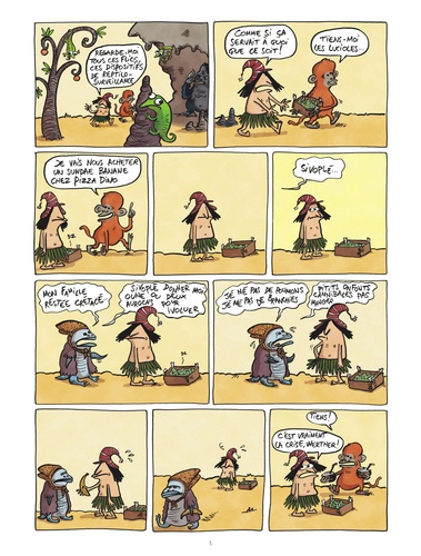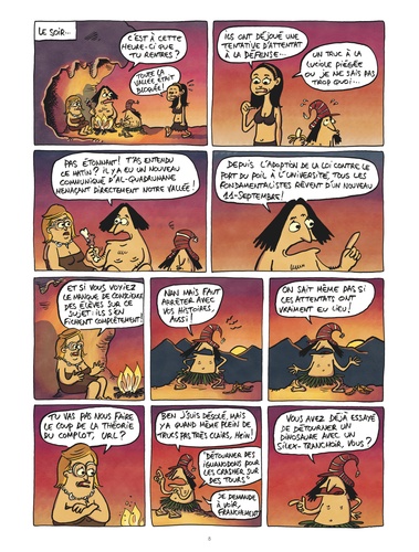 Menace terroriste, prises d'otages, attentats, islamophobie et bonne conscience humanitaire sur fond de tourisme de masse... Autant de sujets brûlants traités avec humour devant lesquels "Silex and the City" ne recule pas avec ce 5e tome ! Dans la vallée, on célèbre l'anniversaire de l'attentat du 11 septembre ? 40001 contre le World Bipède Center. Devant la menace terroriste, un plan Vigiprimate orange est déclenché. Scandalisé par les expulsions, Url s'engage aux côtés de Mammifères sans frontières, tandis que les parents Dotcom partent en vacances à Bab-el-Bipède, où les prix ont chuté. Catastrophe ! Url est pris en otage au Maghreb paléolithique. La famille Dotcom va de nouveau faire bloc pour obtenir sa libération. 5e volet de "Silex and the City", une série qui traite avec audace et humour les grands débats de notre société contemporaine : tourisme de masse, menace terroriste, etc. !