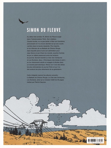 Au début des années 70, Simon du Fleuve surgit dans l'hebdomadaire Tintin. Son créateur, Claude Auclair, ne va pas tarder à fêter son trentième anniversaire et n'a encore derrière lui qu'une courte carrière dans la bande dessinée. Peu importe, le ton littéraire de sa Ballade de Cheveu Rouge, dans laquelle perce toute son admiration pour Jean Giono et son Chant du monde, suscite d'entrée de jeu un débat passionné entre les lecteurs du journal. Suivent bientôt Le Clan des Centaures et Les Esclaves, deux "Chroniques des temps à venir" au ton résolument adulte et engagé et situées dans un monde post-atomique. Retour sur l'une des séries les plus stimulantes du journal Tintin et sur l'un des auteurs les plus attachants de sa génération. Cette intégrale reprend les albums suivants : La Ballade de Cheveu Rouge, Le Clan des Centaures, Les Esclaves, ainsi qu'un dossier inédit de 36 pages réalisé par Patrick Gaumer.