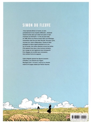 "Si je reprends Simon à l'avenir, ce sera probablement d'une manière différente", déclarait Claude Auclair alors qu'il était tout juste en train d'achever sa Cité N W numéro 3. Dix ans plus tard, en 1988, Simon du fleuve revient dans une tétralogie, scénarisée cette fois par Alain Riondet. Nouveau cycle, nouveau ton. Autre collaboration. Claude et Alain partagent le même regard pénétrant sur la vie, sur le monde. Une même attention envers les autres. S'ils aspirent tous deux à des horizons lointains, leur voyage se veut également plus introspectif. S'en dégage une lucidité sans concession. Une certaine forme de sagesse. Cette intégrale reprend les albums suivants : L'Eveilleur, Les Chemins de l'Ogam, Naufrage tome 1 et tome 2, ainsi qu'un dossier inédit de 44 pages réalisé par Patrick Gaumer.