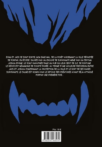 Evan et Jack se sont sortis, non sans mal, de la forêt avoisinant la ville dévastée de Forfar. En Ecosse, sauvés par un groupe de survivants mené par un certain Joshua Byrne, ils sont rapatriés dans un pub qui leur sert de Q.G. de fortune. Le repos est néanmoins de courte durée : au terme d'une houleuse discussion entre Jacques et Joshua concernant la protection de la ville et le sort de ses rares survivants, le calme est rompu par le retour des créatures ayant déjà attaqué Forfar une première fois...