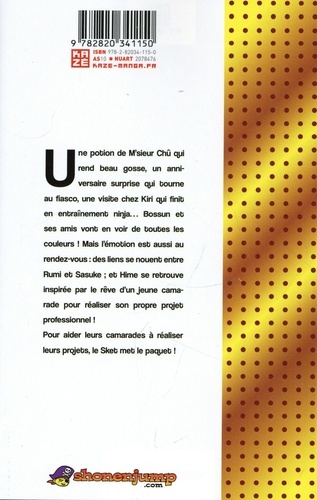 Une potion de M'sieur Chû qui rend beau gosse, un anniversaire surprise qui tourne au fiasco, une visite chez Kiri qui finit en entraînement ninja... Bossun et ses amis vont en voir de toutes les couleurs ! Mais l'émotion est aussi au rendez-vous : des liens se nouent entre Rumi et Sasuke ; et Hime se retrouve inspirée par le rêve d'un jeune camarade pour réaliser son propre projet professionnel ! Pour aider leurs camarades à réaliser leurs projets, le Sket met le paquet !