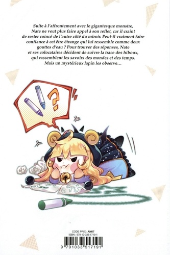 Suite à l'affrontement avec le gigantesque monstre, Nate ne veut plus faire appel à son reflet, car il craint de rester coincé de l'autre côté du miroir. Peut-il vraiment faire confiance à cet être étrange qui lui ressemble comme deux gouttes d'eau ? Pour trouver des réponses, Nate et ses colocataires décident de suivre la trace des hiboux, qui rassemblent les savoirs des mondes et des temps. Mais un mystérieux lapin les observe...