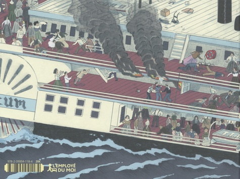 New York, 15 juillet 1904, le PS General Slocum entreprend son dernier voyage sur l'East River en direction de Long Island. Alors que le fameux bateau à vapeur américain subit un incendie d'envergure, son équipage ne parvient pas à éviter le naufrage, entrainant avec lui la plupart des 1400 excursionnistes, majoritairement d'origine allemande. Il s'agit de la plus grande catastrophe maritime civile de l'histoire des Etats-Unis à ce jour. Jan Soeken, allemand lui aussi, nous raconte cet évènement historique sur le ton de l'humour noir. Ainsi, cette véritable tragédie tourne rapidement à la farce burlesque. Pour ce faire, il reprend étape par étape la chronologie d'une débâcle en centrant son récit sur des petits groupes de personnages. C'est le chaos à bord, du flegmatique capitaine au truculent révérend, des matelots aux passagers, il n'y en aura pas un pour sauver l'autre, ils sont tous aussi névrosés qu'incompétents. Slocum est une comédie de moeurs peuplée de "gueules" imparfaites qui siéent tout particulièrement au style, esquissé aux crayons, de l'auteur.