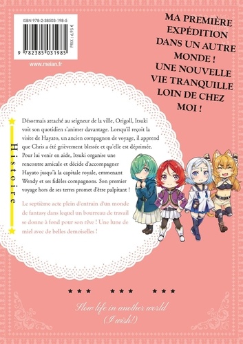 Désormais attaché au seigneur de la ville, Origoll, Itsuki voit son quotidien s'animer davantage. Lorsqu'il reçoit la visite de Hayato, un ancien compagnon de voyage, il apprend que Chris a été grièvement blessée et qu'elle est déprimée. Pour lui venir en aide, Itsuki organise une rencontre amicale et décide d'accompagner Hayato jusqu'à la capitale royale, emmenant Wendy et ses fidèles compagnons. Son premier voyage hors de ses terres promet d'être palpitant ! Le septième acte plein d'entrain d'un monde de fantasy dans lequel un bourreau de travail se donne à fond pour son rêve ! Une lune de miel avec de belles demoiselles !