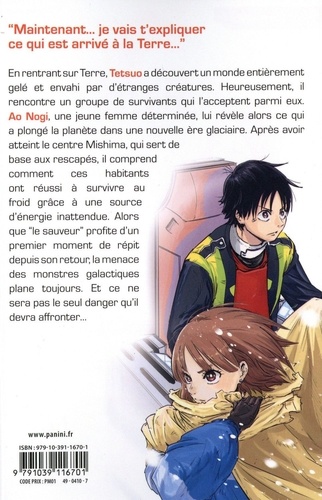 Découvrez l'accueil que réserve les terriens survivants à Tetsuo au sein de leur communauté souterraine. Ce dernier apprendra-t-il la cause de l'ère glaciaire ayant frappé la planète ? Et ce qu'il est advenu de l'organisation de défense de la Terre, l'E-RDE ? Mais surtout, parviendra-t-il à se faire un ami parmi ses nouveaux compagnons ? Quand un artiste aussi réputé que Hideaki Anno (Neon Genesis Evangelion) recommande une oeuvre récente, l'amateur de science-fiction averti en prend généralement bonne note, d'autant plus quand cette même oeuvre est aussi saluée par Hideo Kojima (Metal Gear Solid) et ONE (One Punch Man, Mob Psycho 100). Il serait bien difficile de leur donner tort quand on voit avec quelle aisance son jeune auteur Yuhiro Tsujitsugu s'approprie les codes de la SF post-apocalyptique. Il nous offre une oeuvre pleine d'originalité riche en action et en combats spectaculaires. La première version de Snowball Earth, un récit court publié dans le mensuel Big Comics Spirit a été à ce point plébiscitée par le lectorat, pourtant réputé exigeant du magazine, que l'éditeur Shôgakukan a offert une prépublication régulière à son auteur pour qu'il en fasse une série toujours en cours au Japon.