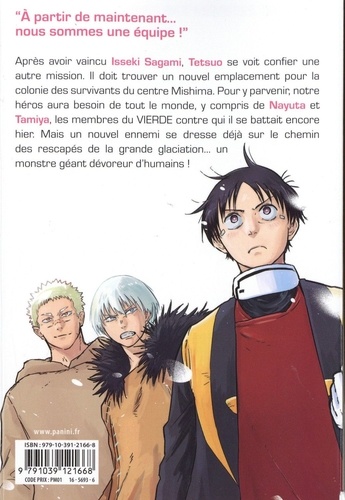 Après avoir vaincu Isseki Sagami, Tetsuo se voit confier une autre mission. Il doit trouver un nouvel emplacement pour la colonie des survivants du centre Mishima. Pour y parvenir, notre héros aura besoin de tout le monde, y compris de Nayuta et Tamiya, les membres du VIERDE contre qui il se battait encore hier. Mais un nouvel ennemi se dresse déjà sur le chemin des rescapés de la grande glaciation... un monstre géant dévoreur d'humains !