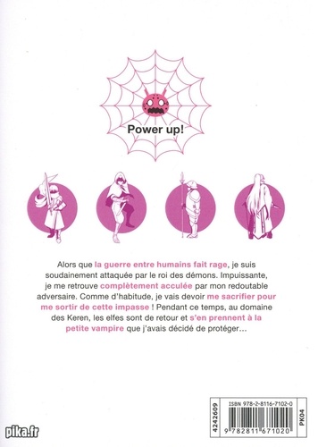 Alors que la guerre entre humains fait rage, je suis soudainement attaquée par le roi des démons. Impuissante, je me retrouve complètement acculée par mon redoutable adversaire. Comme d'habitude, je vais devoir me sacrifier pour me sortir de cette impasse ! Pendant ce temps, au domaine des Keren, les elfes sont de retour et s'en prennent à la petite vampire que j'avais décidé de protéger...