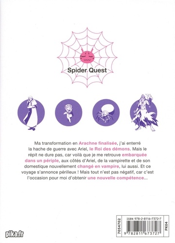 Ma transformation en Arachne finalisée, j'ai enterré la hache de guerre avec Ariel, le Roi des démons. Mais le répit ne dure pas, car voilà que je me retrouve embarquée dans un périple, aux côtés d'Ariel, de la vampirette et de son domestique nouvellement changé en vampire, lui aussi. Et ce voyage s'annonce périlleux ! Mais tout n'est pas négatif, car c'est l'occasion pour moi d'obtenir une nouvelle compétence...