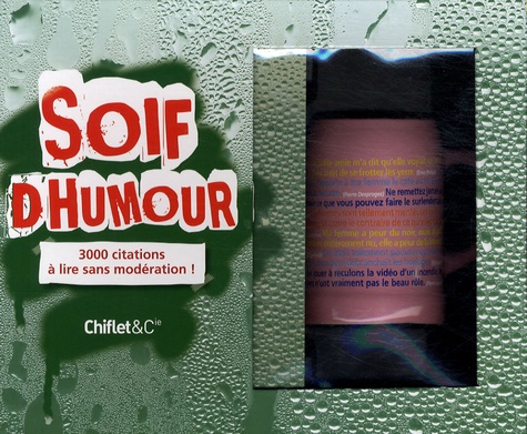 Le rire est un constituant naturel produit depuis des siècles à partir de l'esprit humain. Il joue un rôle essentiel dans l'organisme et il est indispensable au bon fonctionnement des muscles et du cerveau. Le coffret Soif d'humour est sans conservateurs ajoutés et sans arômes artificiels, de plus il ne contient ni sucre, ni saccharose et peut donc être apprécié sans modération !