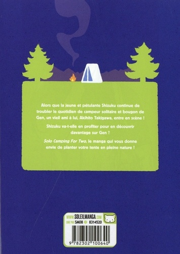 Gen est un campeur solitaire. Ce qu'il préfère par-dessus tout est de se retrouver seul dans la nature. Il en profite jusqu'au jour où débarque la tornade Shizuku, une jeune femme qui pratique à merveille l'art de l'incruste. Sa délicieuse cuisine de plein air parviendra-t-elle à le faire changer d'avis ? Découvrez les meilleures recettes en extérieur aux côtés de ce duo chaud bouillant !