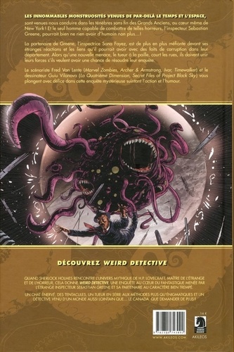 Les innommables monstruosités venues de par-delà le temps et l'espace sont venues nous conduire dans les ténèbres sans fin des Grands Anciens, au coeur même de New York ! Et le seul homme capable de combattre de telles horreurs, l'inspecteur Sebastian Greene, pourrait bien ne rien avoir d'humain non plus ! La partenaire de Greene, l'inspectrice Sana Fayez, est de plus en plus méfiante devant ses étranges réactions et les liens qu'il pourrait avoir avec des faits de corruption dans leur département. Alors qu'une nouvelle menace, le tueur à la paille, court les rues, ils doivent unir leurs forces s'ils veulent avoir une chance de résoudre leur enquête. Le scénariste Fred Van Lente (Marvel Zombies, Archer & Armstrong, Ivar, Timewalker) et le dessinateur Guiu Vilanova (La Quatrième Dimension, Secret Files of Project Black Sky) vous plongent avec délice dans cette enquête mystérieuse suintant l'action et l'humour.