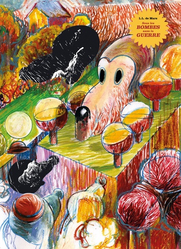 Chronique émotionnelle de l'écroulement d'un monde, Sous les bombes sans la guerre évoque les derniers moments de la vie d'un homme, accompagné de son fils. Ce dernier est représenté sous les traits de Pif le chien, personnage créé en 1948 par José Cabrero Arnal pour le quotidien L'Humanité. Le père a l'apparence de Top, précurseur de Pif, né en 1935. Submergés par un déluge de larmes, de sang et de bombes métastasiques, nos deux animaux aux traits ronds se retrouvent confrontés à l'abîme d'une aventure inéluctable. L'écoulement du temps se fait erratique, le lecteur est embarqué dans des allers-retours incessants entre le présent à l'hôpital et les réminiscences altérées d'un passé enfoui à jamais, mettant par exemple en scène Top chevauchant sa fameuse fusée, attaqué par des moustiques géants ou encore prisonnier d'un camp d'internement pendant la guerre d'Espagne. Cet univers instable se déploie dans un livre au format ample où se croisent tableaux inspirés de la peinture chrétienne et planches de BD classique, communisme et religion, souvenirs du père et du fils.