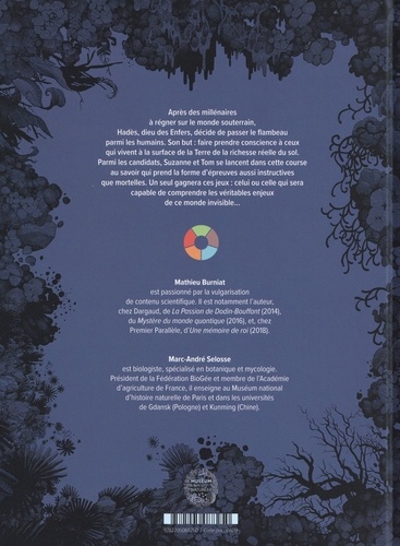 Après Le Mystère du monde quantique, un doc-fiction drôle et passionnant sur ce sol qui nous fait vivre, sous le conseil scientifique de Marc-André Selosse. Après des millénaires à régner sur le monde sous-terrain, le dieu des Enfers, décide de passer le flambeau. Son but : faire prendre conscience à ceux qui vivent à surface de la terre de l'importance et de la richesse réelle du sol. Mais Hadès n'est pas un enfant de choeur et il n'entend pas laisser les clés de son royaume au premier venu ! Parmi les candidats à sa succession, Suzanne et Tom se lancent dans cette course au savoir qui prend la forme d'épreuves aussi instructives que mortelles. Un seul gagnera ces jeux : celui ou celle qui sera capable de voir au-delà des préjugés et de comprendre les véritables enjeux de ce monde invisible...