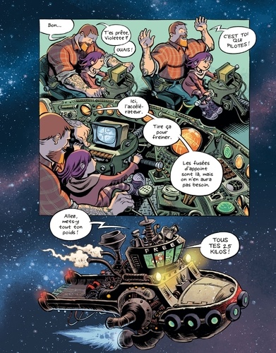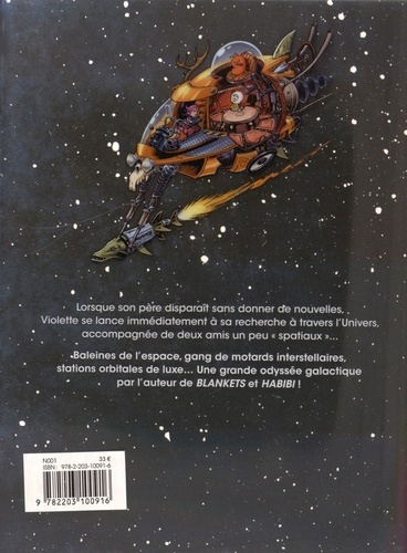 Lorsque son père disparaît sans donner de nouvelles, Violette se lance immédiatement à sa recherche à travers l’Univers, accompagnée de deux amis un peu «spatiaux». Baleines de l’espace, gang de motards interstellaires, stations orbitales de luxe… Une grande odyssée galactique par l’auteur de Blankets et Habibi !