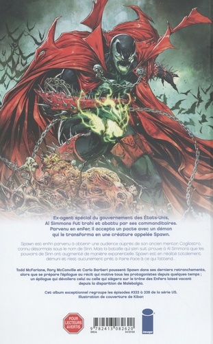La série créée par Todd McFarlane en 1992 se poursuit avec son créateur toujours aux commandes ! Avec l'univers de Spawn en pleine expansion, ce sont de nouveaux défis auquel notre héros va être confronté ! Al Simmons est plus seul que jamais. Les alliés l'ont abandonné. De nouvelles menaces émergent et sa mission est mise en doute, sans qu'il sache s'il pourra faire face à ces dangers. Est-ce vraiment la fin de Spawn... ? C'est en tout cas un tournant pour Al Simmons.
