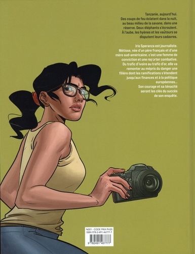 Tanzanie. Des coups de feu éclatent dans la nuit, au beau milieu de la savane, dans une réserve. Deux éléphants s'écroulent. A l'aube, les hyènes et les vautours se disputent leurs cadavres. Du trafic d'ivoire au trafic d'or, Iris Speranza va remonter au mépris du danger une filière dont les ramifications s'étendent jusqu'aux finances et à la politique européennes... Speranza est une série qui a pour ambition de sensibiliser le grand public aux problématiques contemporaines (écologie et sauvegarde de la planète, misère et lutte contre les inégalités, mondialisation et corruption, société numérique et libertés individuelles, etc.) sous la forme d'une fiction puisant ses fondations dans la réalité du 21ème siècle. De par sa double essence - une enquête journalistique menée tambour battant dans un cadre exceptionnel - Speranza revendique une double identité de genre : à la fois polar et récit d'aventure. Le premier épisode, intitulé D'or et d'ivoire, se déroule en Tanzanie : il y est question de l'organisation d'un trafic d'ivoire, dont les rouages révèlent aux protagonistes un lien vers une série de malversations au sein d'une exploitation aurifère dont l'influence se ressent jusque dans les quotidien des européens. Iris Speranza est une journaliste d'une trentaine d'années. Métisse, née d'un père francais et d'une mère sud-américaine, c'est une femme de conviction et une reporter combative. Son courage et sa ténacité seront les clés du succès de son enquête.