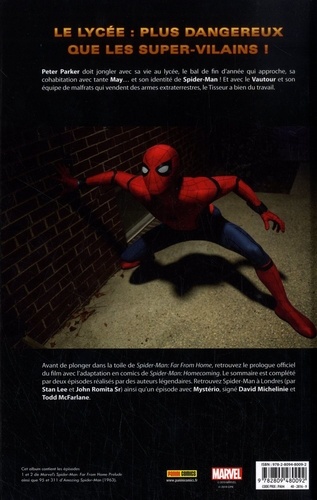 Le lycée : plus dangereux que les super-vilains ! Peter Parker doit jongler avec sa vie au lycée, le bal de fin d'année qui approche, sa cohabitation avec tante May... et son identité de Spider-Man ! Et avec le Vautour et son équipe de malfrats qui vendent des armes extraterrestres, le Tisseur a bien du travail. Avant de plonger dans la toile de Spider-Man : Far From Home, retrouvez le prologue officiel du film avec l'adaptation en comics de Spider-Man : Homecoming. Le sommaire est complété par deux épisodes réalisés par des auteurs légendaires. Retrouvez Spider-Man à Londres (par Stan Lee et John Romita Sr) ainsi qu'un épisode avec Mystério, signé David Micheline et Todd McFarlane. Cet album contient les épisodes 1 et 2 de Marvel's Spider-Man : Far From Home Prelude ainsi que 95 e t311 d'Amazing Spider-Man (1936).