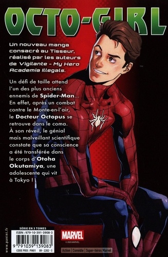 Un nouveau manga consacré au Tisseur, réalisé par les auteurs de Vigilante - My Hero Academia Illegals. Un défi de taille attend l'un des plus anciens ennemis de Spider-Man... En effet, après un combat contre le Monte-en-l'air, le Docteur Octopus se retrouve dans le coma. A son réveil, le génial mais malveillant scientifique constate que sa conscience a été transférée dans le corps d'Otoha Okutamiya, une adolescente qui vit à Tokyo !