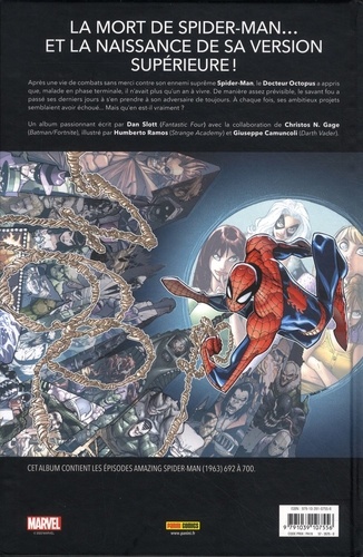 Découvrez Alpha, un nouveau personnage dans la galaxie Spider-Man. Mais est-ce un nouveau héros... ou un nouveau vilain ? Spidey est ensuite pris en chasse par le Caïd et le Super-Bouffon mais cela va vite être le dernier de ses soucis, car un Docteur Octopus mourant a compris que Peter Parker était Spider-Man ! Nous continuons à compléter, dans la collection MARVEL DELUXE, le run de Dan Slott sur la série, avec cet album essentiel qui fait la jonction avec l'ère Superior Spider-Man ! Un ouvrage très attendu car certains épisodes n'ont encore jamais été publiés en librairie !