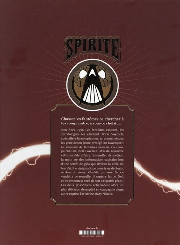 New York, 1931. Les fantômes existent, les spiritologues les étudient. Boris Voynich, spécialiste des ectoplasmes, est assassiné sous les yeux de son jeune protégé Ian Davenport. Le chasseur de fantômes s'associe avec une journaliste, Nell Lovelace, afin de résoudre cette sordide affaire. Ensemble, ils mettent la main sur des informations capitales lors d'une soirée de gala qui devient la cible du terrifiant et énigmatique meurtrier de Boris, Arthur Arroway. Obsédé par une féroce vendetta personnelle, il capture Ian et Nell et les emmène à bord de son dirigeable géant. Les deux prisonniers échafaudent alors un plan d'évasion désespéré en compagnie d'une autre captive, l'aviatrice Mary Pickett.