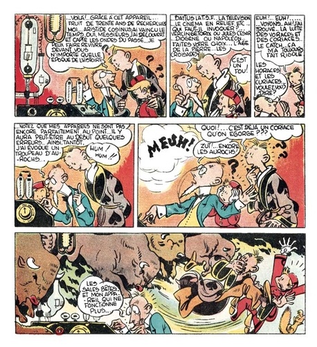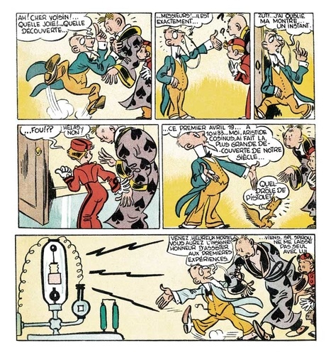 Avec la Libération, qui coïncide avec la renaissance du Journal de Spirou, s'ouvre une période de travail intensif pour Jijé. Entre autres projets, il reprend la série Spirou pour laquelle il crée le personnage loufoque de Fantasio. C'est ce nouveau personnage que l'on retrouve, aux côtés de Spirou dans l'album "Spirou et l'aventure", qui réunit les épisodes de l'histoire écrite et dessinée par Jigé dans le Journal de Spirou en 1944 et 1945. Sur la trame d'un voyage dans le temps, Jijé livre là une des histoires fondatrices du duo, sur un mode feuilletonesque des plus réjouissants.
