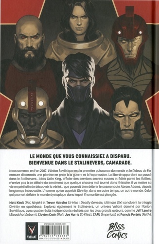 Le monde que vous connaissiez a disparu. Bienvenue dans le Stalinevers, camarade. Nous sommes en l'an 2017. L'Union Soviétique est la première puissance du monde et le Rideau de Fer entoure désormais une planète en proie à la guerre et à l'oppression. La liberté appartient au passé dans le Stalinevers... Mais Colin King, officier des services secrets russes et fidèle parmi les fidèles, n'arrive pas à se défaire du sentiment que quelque chose a mal tourné dans l'histoire. Il va mettre sa vie en péril afin de découvrir la vérité... que pourrait bien détenir le cosmonaute Abram Adams, depuis longtemps introuvable. L'homme qu'on appelait Divinity, dans un autre temps, un autre monde. Celui qui pourrait défaire le monde dystopique dans lequel l'humanité est plongée.