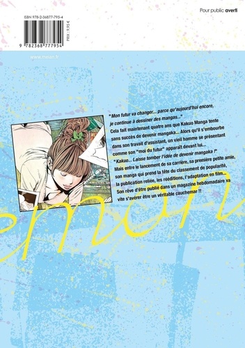 Mon futur va changer... parce qu'aujourd'hui encore, je continue à dessiner des mangas... Cela fait maintenant quatre ans que Kakuo Manga tente sans succès de devenir mangaka... Alors qu'il s'embourbe dans son travail d'assistant, un vieil homme se présentant comme son "moi du futur" apparaît devant lui... "Kakuo... Laisse tomber l'idée de devenir mangaka ! " Mais entre le lancement de sa carrière, sa première petite amie, son manga qui prend la tête du classement de popularité, la publication reliée, les rééditions, l'adaptation en film... Son rêve d'être publié dans un magazine hebdomadaire va vite s'avérer être un véritable cauchemar !! Les mangakas sont les esclaves des temps modernes. Et pourtant, si je peux rêver... C'est grâce au manga ! Une vision moderne du manga racontée par un auteur au million de ventes en un seul tome. Contrats, rémunération à la planche, salaire des assistants, droits d'auteur... Voilà la réalité du manga dont personne ne parle jamais. Un auteur dont les titres se sont écoulés à plusieurs millions d'exemplaires nous raconte l'envers du monde du manga et ses pratiques éculées avec un point de vue journalistique teinté d'humour, pour nous offrir le meilleur des divertissements ! Maintenant, C'est ça, mon combat !!
