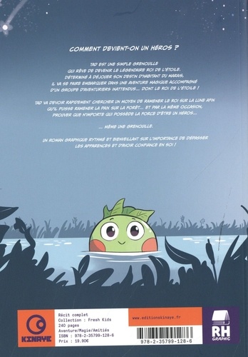 Comment devient-on un héros ? Tad est une simple grenouille qui rêve de devenir le légendaire roi de l'étoile. Déterminé à déjouer son destin d'habitant des marais, il va se faire embarquer dans une aventure magique accompagné d'un groupe d'aventuriers inattendus... dont le roi de l'étoile ! Tad va devoir rapidement chercher un moyen de ramener le roi sur la Lune afin qu'il puisse ramener la pais sur la forêt... et par la même occasion, prouver que n'importe qui possède la force d'être un héros... ... même une grenouille. Un roman graphique rythmé et bienveillant sur l'importance de dépasser les apparences et d'avoir confiance en soi !