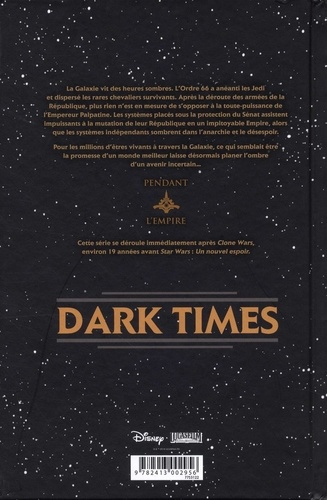 La Galaxie vit des heures sombres. L'Ordre 66 a anéanti les Jedi et dispersé les rares chevaliers survivants. Après la déroute des armées de la République, plus rien n'est en mesure de s'opposer à la toute-puissance de l'Empereur Palpatine. Les systèmes placés sous la protection du Sénat assistent impuissants à la mutation de leur République en un impitoyable Empire, alors que les systèmes indépendants sombrent dans l'anarchie et le désespoir. Pour les millions d'êtres vivants à travers la Galaxie, ce qui semblait être la promesse d'un monde meilleur laisse désormais planer l'ombre d'un avenir incertain... Le Jedi Dass Jennir - qui a survécu à la purge - croise la route de Bomo Vertemousse. Ensemble, ils partent à la recherche des proches de Bomo qui ont mystérieusement disparu. Pendant l'Empire. Cette série se déroule immédiatement après Clone Wars, environ 19 années avant Star Wars : Un nouvel espoir.