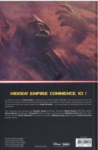 L'Aube Ecarlate de Qi'ra sème le chaos dans l'Empire Galactique. Mais avant les débuts de la saga Hidden Empire, Luke va devoir sauver des impériaux d'une mort certaine, Dark Vador va confronter Sabé et Sana Starros va rassembler les proches d'Aphra. Les comics Star Wars se déroulant entre L'Empire Contre-Attaque et Le Retour du Jedi sont proposés dans de copieux volumes depuis le début de War of the Bounty Hunters. Les lecteurs ont ainsi retrouvé Qi'ra, incarnée par Emilia "Daenerys" Clarke dans Solo : A Star Wars story. L'histoire de l'anti-héroïne se mêle ainsi à celles de Luke, Leia ou Dark Vador et se poursuit depuis dans Crimson Reign et Hidden Empire qui débute ici.