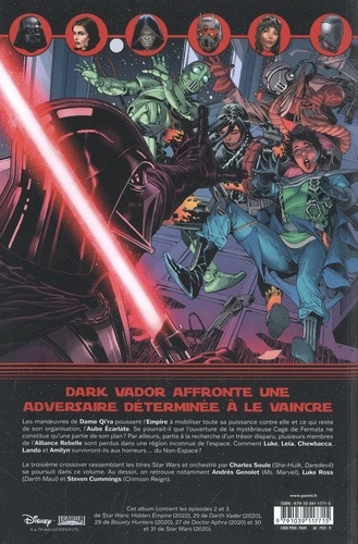Dame Qi'ra annonce à l'Empereur qu'elle est en possession de la Cage de Fermata. Avec cet artefact Sith, la cheffe de l'Aube Ecarlate représente un réel danger pour Palpatine et Dark Vador. Ce dernier poursuit par ailleurs sa quête aux côtés de Sabé, l'ancienne servante de Padmé Amidala. Aphra, Luke Skywalker, Leia et Valance répondent également présents. Prépublication des séries régulières Star Wars, Dark Vador, Docteur Aphra et Bounty Hunters mais aussi de la mini-série évènement Hidden Empire avant leur sortie en volumes séparés. On y retrouve tous les auteurs et personnages les plus emblématiques de la franchise.
