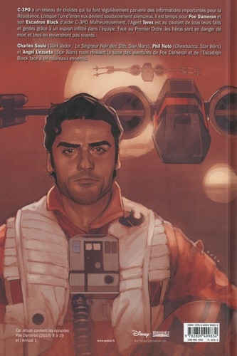 C-3P0 a un réseau de droïdes qui lui font régulièrement parvenir des informations importantes pour la Résistance. Lorsque l'un d'entre eux devient soudainement silencieux, il est temps pour Poe Dameron et son Escadron Black d'aider C-3P0. Malheureusement, l'Agent Terex est au courant de tous leurs faits et gestes grâce à un espion infiltré dans l'équipe. Face au Premier Ordre, les héros sont en danger de mort et tous ne reviendront pas vivants. Charles Soule (Dark Dador : Le Seigneur Noir des Sith, Star Wars), Phil Noto (Chewbacca, Star Wars) et Angel Unzueta (Star Wars) nous révèlent la suite des aventures de Poe Dameron et de l'Escadron Black face à de nouveaux ennemis.