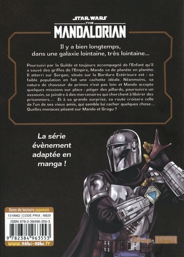 Il y a bien longtemps, dans une galaxie lointaine, très lointaine... Poursuivi par la Guilde et toujours accompagné de l'Enfant qu'il a sauvé des griffes de l'Empire, Mando va de planète en planète. Il atterri sur Sorgan, située sur la Bordure Extérieure est : sa faible population en fait une cachette idéale. Néanmoins, sa nature de chasseur de primes n'est pas loin et Mando accepte quelques missions sur place : piéger des pillards, poursuivre un assassin, se joindre à des mercenaires qui cherchent à libérer des prisonniers... Et à sa grande surprise, sa route croisera celle de l'un de ses vieux amis, qui semble lui cacher quelques chose... Quelles menaces pèsent sur Mando et Grogu ? La série évènement adaptée en manga !