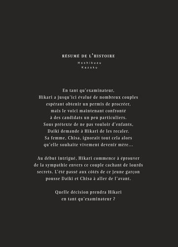 Dans ce second volume, on s'attarde plus longuement sur les enfants testeurs de parents. Qui sont ces orphelins récupérés par l'Etat, formatés comme des robots à tester les parents ? Ces enfants à l'esprit brisé, au regard vide de tout sentiment réel, passent d'une famille à une autre avec une fausse indifférence. Tout du moins le pense-t-on. En effet, le jeune héros, en mission, va recroiser une ancienne mère postulante, et un fort sentiment pour elle va resurgir et le sortir de son formatage, poussant l'Etat à l'exfiltrer pour le droguer afin qu'il reprenne son travail.