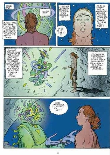 d’Atana. Bien lui en prend : piégé par la “Paterne“, le héros sera, dans des conditions effrayantes, envoyé vers une destination inconnue. Comment retrouver Atana ? Où est-elle ? Personne ne peut rien dire à Stel, égaré dans sa course éperdue et solitaire à la recherche de celle qu’il aime. Son seul guide est le message de l’Edelfe, “Ochandaï Swanii Atana“: La Déesse Atana va mourir si personne ne fait rien. Quatrième tome de la saga du “Monde d’Edena“, l’histoire de Stel est terrible et oppressante. Serait-ce, cette fois-ci, une volonté de l’auteur de disserter sur la soif de pouvoir et les folies qu’elle engendre ? Dans un univers truffé de surprises, comme toujours chez Moebius, une description sans merci du machiavélisme et de la manipulation.