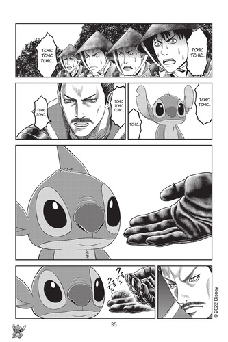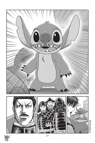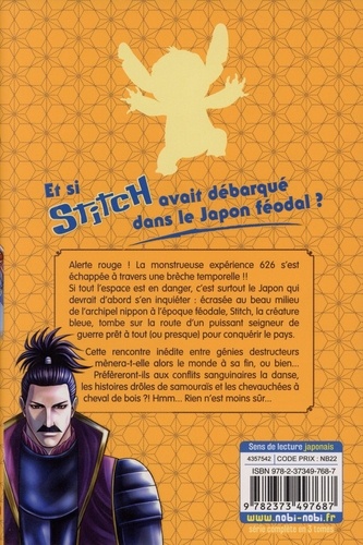 Alerte rouge ! La monstrueuse expérience 626 s'est échappée à travers une brèche temporelle !! Si tout l'espace est en danger, c'est surtout le Japon qui devrait d'abord s'en inquiéter : écrasée au beau milieu de l'archipel nippon à l'époque féodale, Stitch, la créature bleue, tombe sur la route d'un puissant seigneur de guerre prêt à tout (ou presque) pour conquérir le pays. Cette rencontre inédite entre génies destructeurs mènera-t-elle alors le monde à sa fin, ou bien... Préféreront-ils aux conflits sanguinaires la danse, les histoires drôles de samouraïs et les chevauchées à cheval de bois ? ! Hmm... Rien n'est moins sûr...