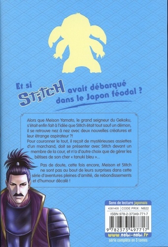 Alors que Meison Yamato, le grand seigneur du Gekoku, s'était enfin fait à l'idée que Stitch était tout sauf un démon, il se retrouve nez à nez avec deux nouvelles créatures et leur étrange aspirateur ? ! Pour couronner le tout, il reçoit de mystérieuses assiettes d'un marchand, doit se présenter avec Stitch devant un membre de la cour, et n'a d'autre choix que de gérer les bêtises de son cher "tanuki bleu"... Pas de doute, cette fois encore, Meison et Stitch ne sont pas au bout de leurs surprises dans cette série d'aventures pleines d'amitié, de rebondissements et d'humour décalé !