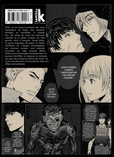 2019, un an avant l'ouverture des Jeux olympiques de Tokyo, des meurtres étranges se succèdent. A chaque fois, une partie du corps est retrouvée calcinée et le globe oculaire de l'oeil gauche vient à manquer. Souta Aoba, un jeune inspecteur de police, et Hitomi Tachibana de I'"équipe d'investigation par mémoire oculaire" vont enquêter ensemble sur cette curieuse affaire. Grâce à une technologie révolutionnaire, ils peuvent déchiffrer et analyser la mémoire des yeux des vivants et même des morts. Ce qu'ils vont découvrir va les entraîner dans une affaire extraordinaire.