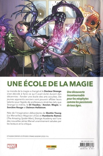 Stephen Strange s'est finalement résolu à faire ce qu'il a toujours évité pendant des décennies : ouvrir une école pour les jeunes sorciers. De jeunes talents venus du monde entier convergent donc vers la Nouvelle-Orléans, ils vont y étudier les Arts Mystiques avec Strange, Frère Vaudou, la Sorcière Rouge, Magie ou encore Hellstrom. Mais de nombreuses menaces mystiques mettent en péril l'école qui a peu de chances d'accueillir plusieurs générations d'élèves... C'est toujours un plaisir de voir arriver dans l'univers Marvel de nouveaux personnages. En voici toute une floppée, sous la houlette des dynamiques Skottie Young (Deadpool, Le Magicien d'Oz) et Humberto Ramos (Spider-Man) ! C'est Harry Potter chez les héros Marvel !